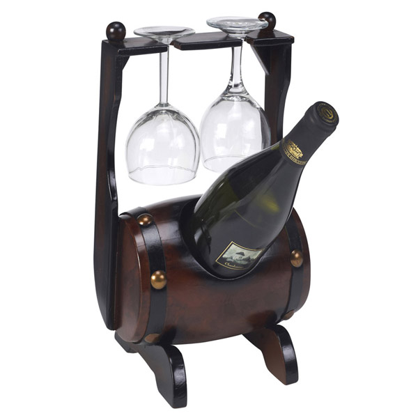 בר יין חבית שוכבת לבקבוק אחד ו-2 כוסות