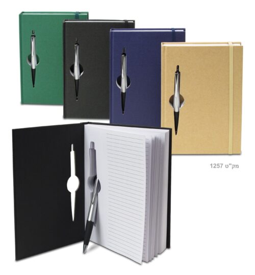 בלוק נייר עם כריכה קשה ועט שקוע בנייר