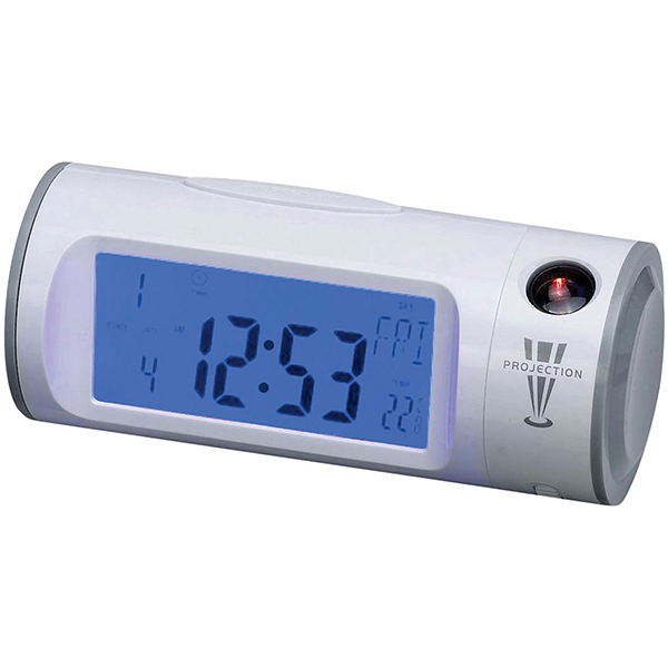 שעון מעורר עם מקרן תצוגה על הקיר